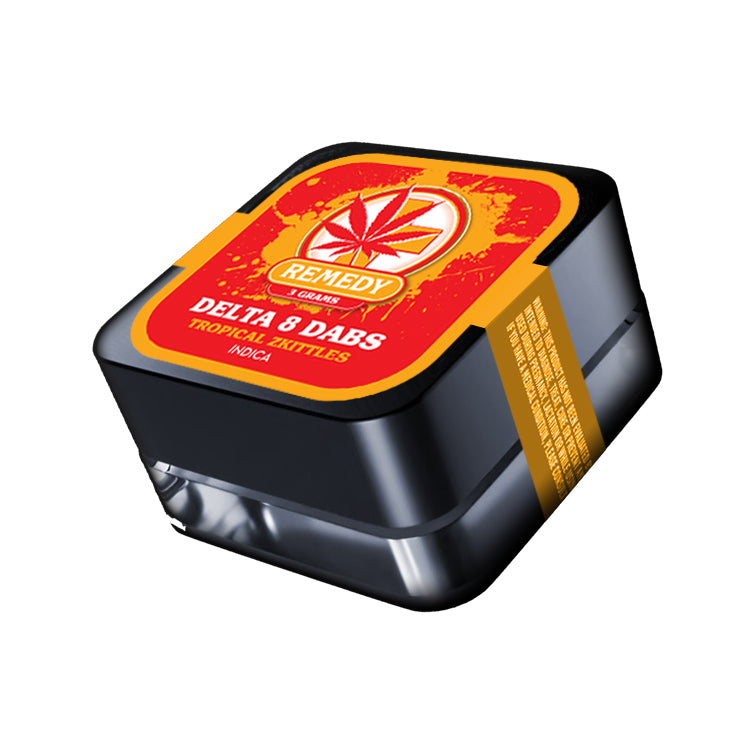 Also known as "Original Z", Tropical Zkittles is a indica-dominant hybrid strain is a crossing between Grape Ape with Grapefruit. This strain is a robust sweet blend of tropical fruit and candy flavors. Tropical Zkittles is a smooth strain to elevate your mood and put a smile on your face. Enjoy both the benefits and tropical flavor of these amazing Delta 8 THC 3 gram Dabs,