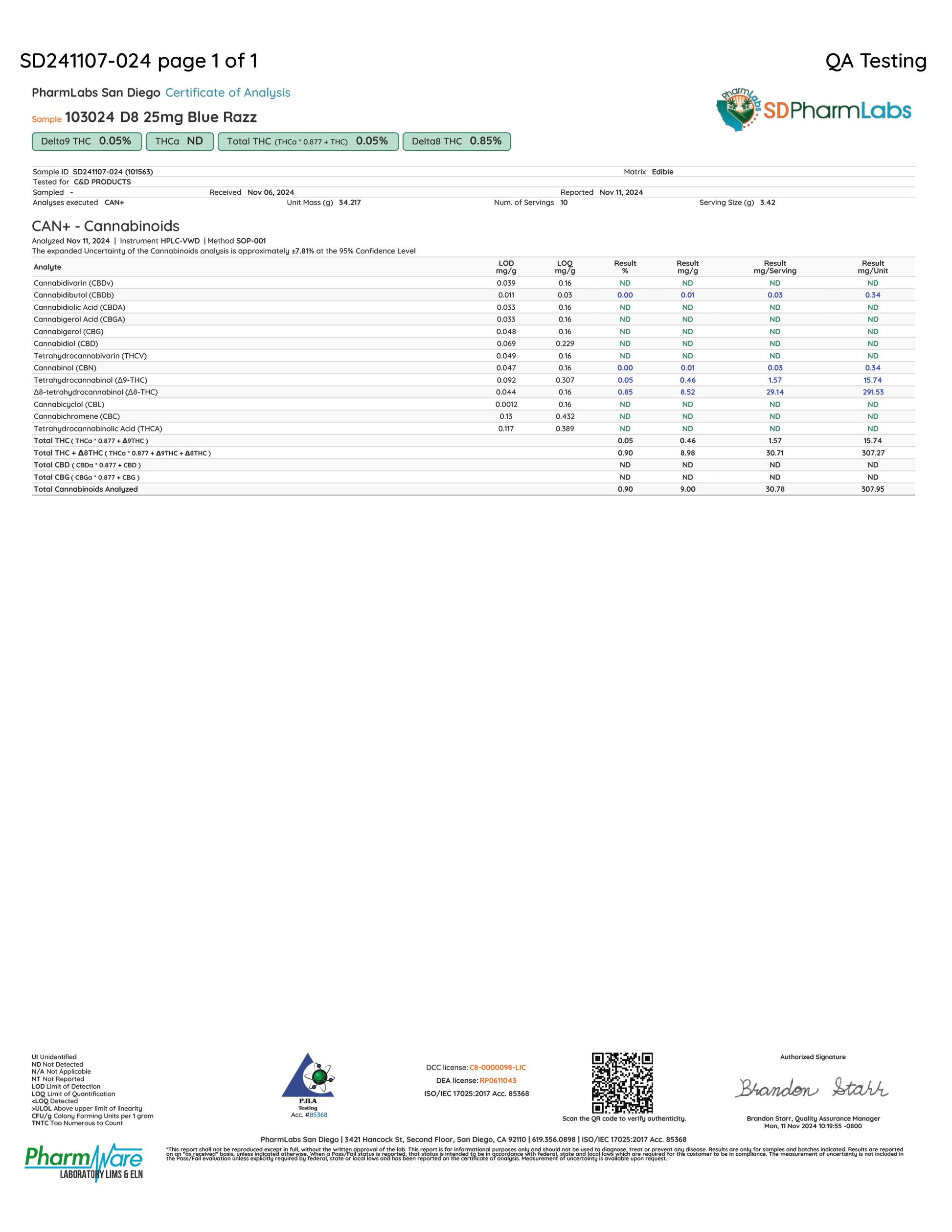 🍃 Total Cannabinoids: .97%