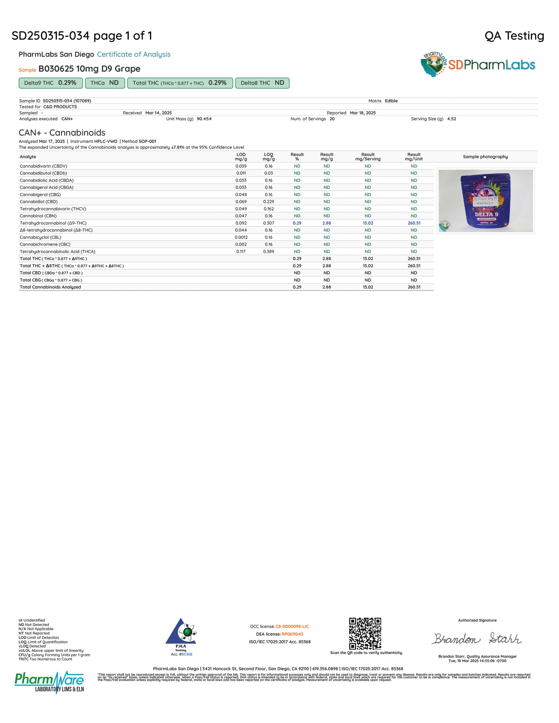 - ∆9 THC Content: <0.3% by Volume