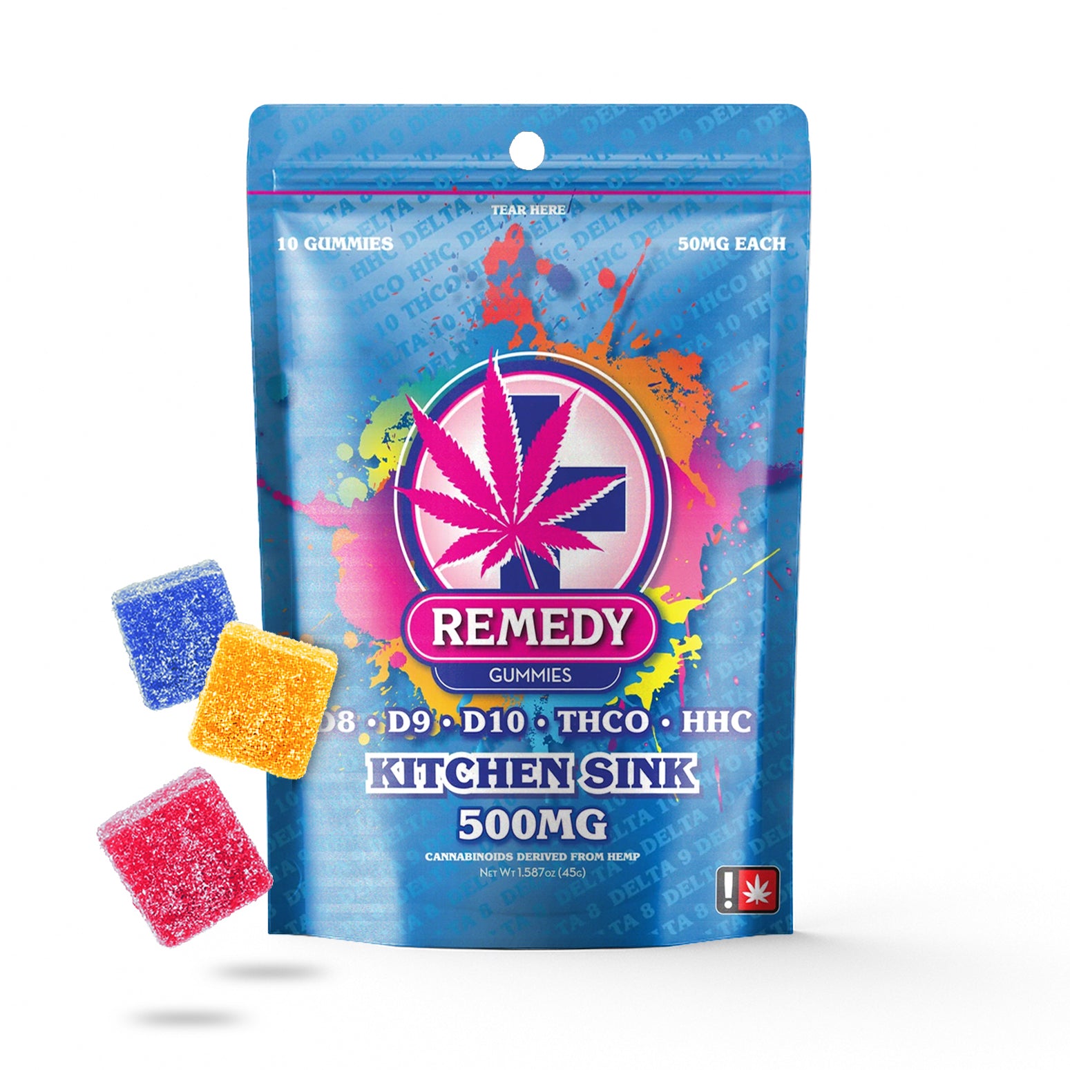10 Gummies • 50mg EachKitchen Sink (Blue) D8 + D9 + D10 + THCO + HHC 500mg Gummies