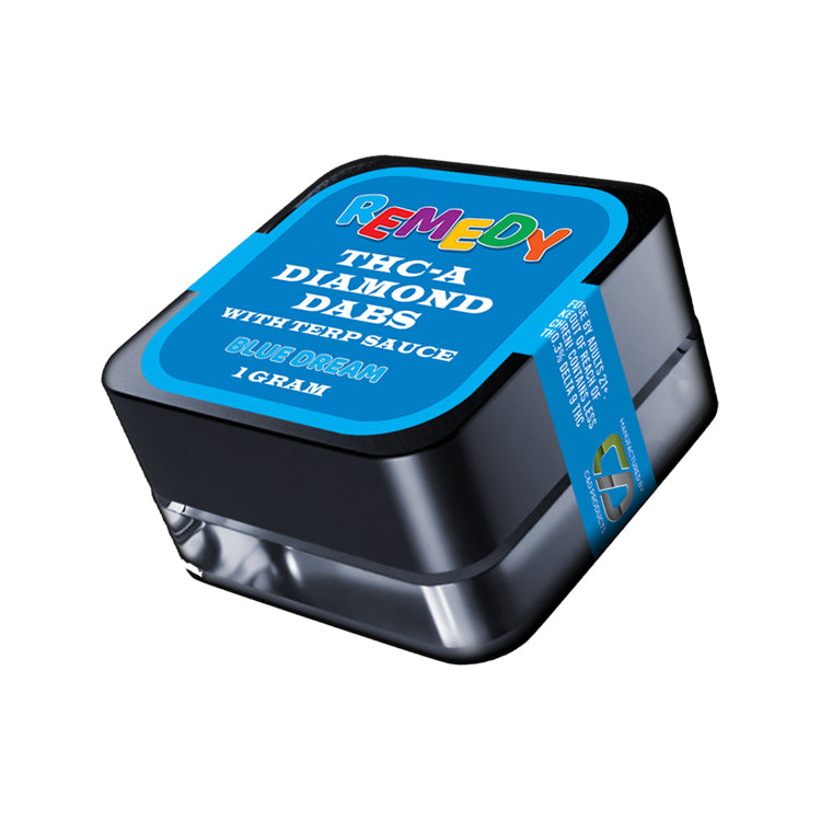 Blue Dream is a sativa dominant strain crossed between Blueberry and Haze. This widely popular strain offers aromas of sweet sugary blueberries, vanilla with notes of floral. Offering an energetic yet calming effect with hints of creativity. Our Diamond Dabs are made using THC-A diamonds, which are then infused with Blue Dream Terpenes Sauce, allowing you to experience the full flavor and benefits of natural terpenes.